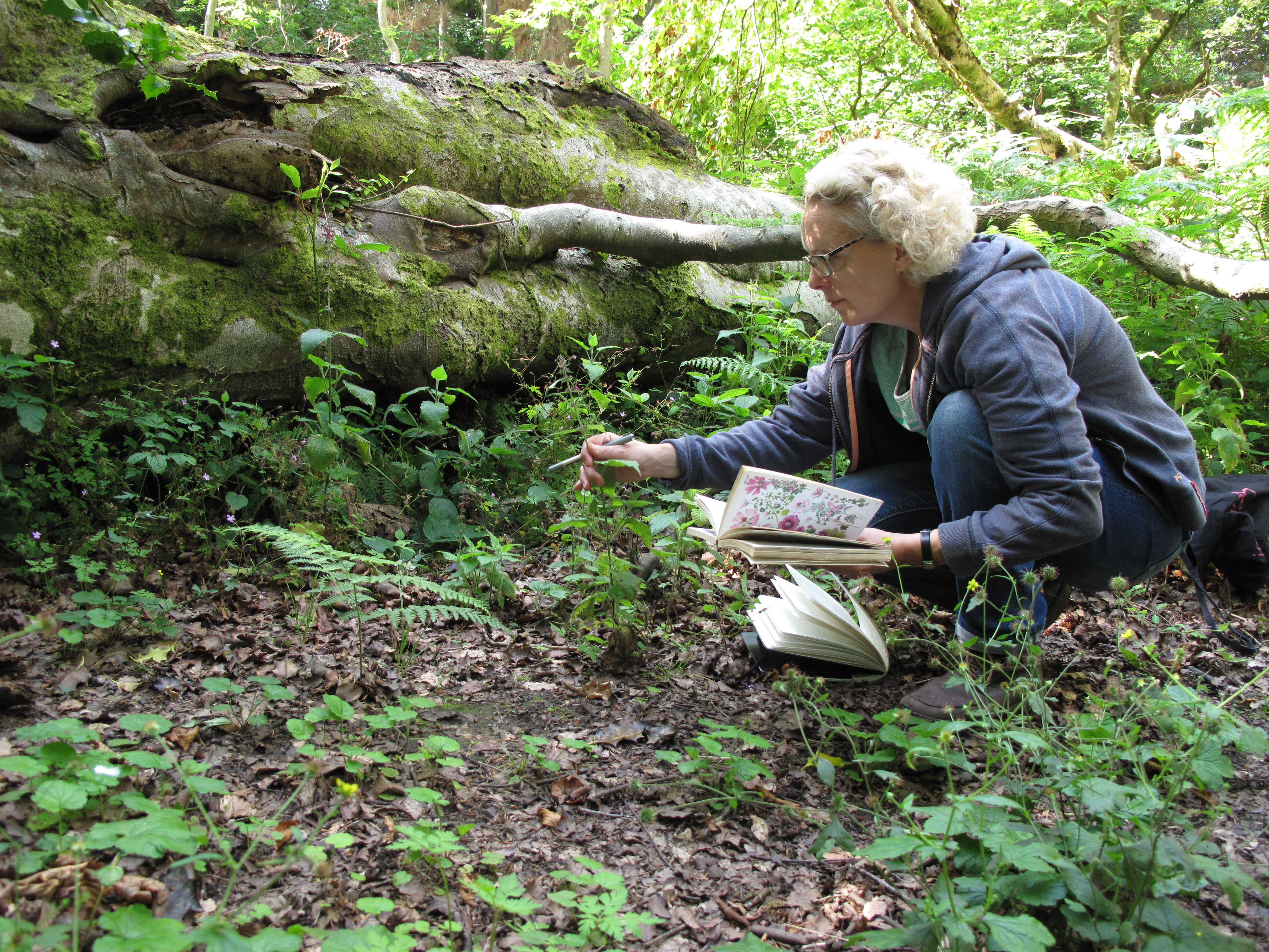Jane Hyslop, Identifying wild plants, Gore Glen, Midlothian.