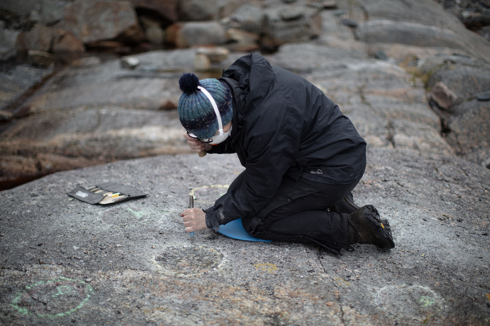 Mary Bourne RSA, Carving bedrock, photo Maria Konstanse Bruun.