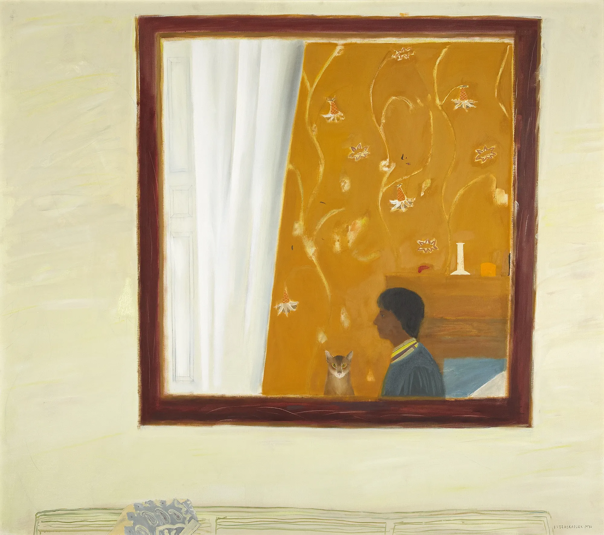 Elizabeth Blackadder RSA, Self Portrait with Cat, 1976