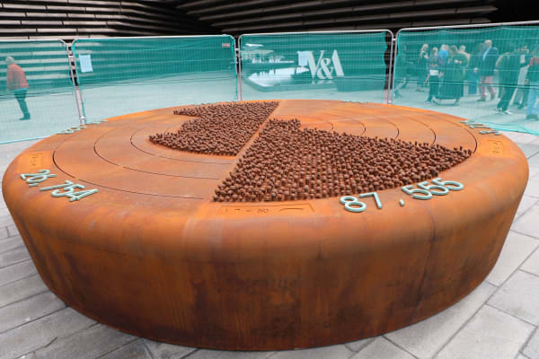 Commensalis is made up of seven steel tables, one showing the numbers of whales killed, and six representing the whale species hunted and celebrating their recovery post-whaling.