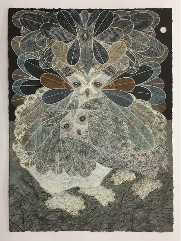 This exhibition by Michael Agnew RSA combines both retrospective and recent work, showing the artists long term focus on meaning and process. Capturing the ‘Anima Mundi’ as reflected in the owl as archetype, alongside other subtle and overt critiques of the contemporary world of ‘fast media.’ Themes of transfiguration and anthropomorphism, asks us to reflect on layers of possible meaning.