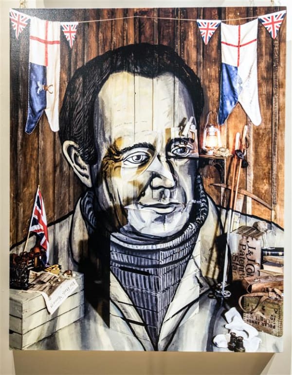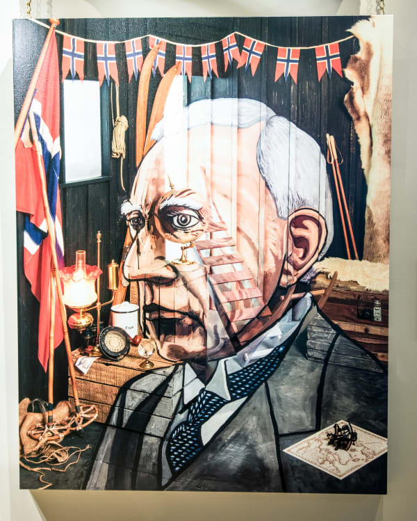 Depicting two of polar exploration’s most recognisable figures, Captain Scott and Roald Amundsen, the portraits were created by photographing the interior of an Antarctic base camp depot containing all the equipment needed for a polar sledging journey, and painting a portrait of each explorer onto the image.
