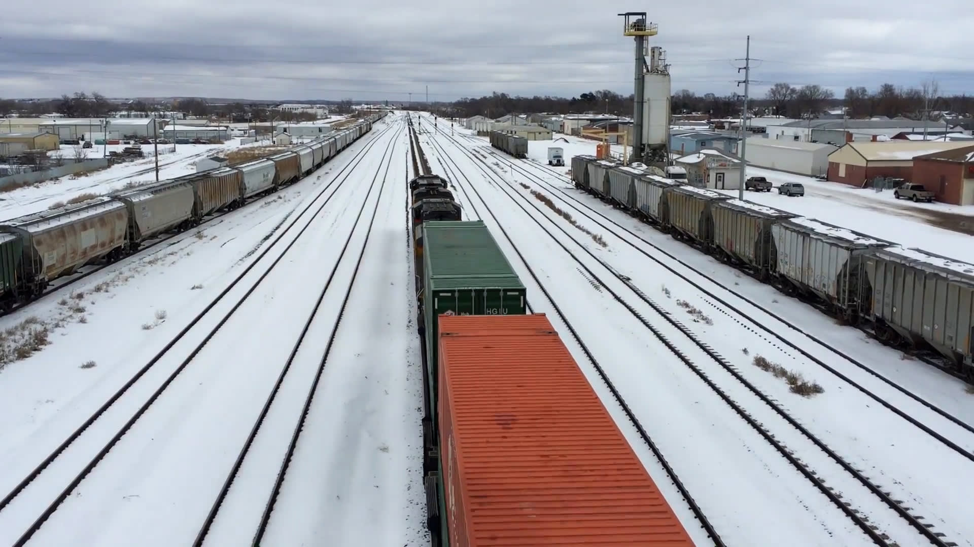 In North Platte, Tim Sandys creates a percussive, rhythmic musical work with crisp sunlit visuals in the unlikely setting of an industrial railway junction located at snowbound North Platte, Nebraska, USA.